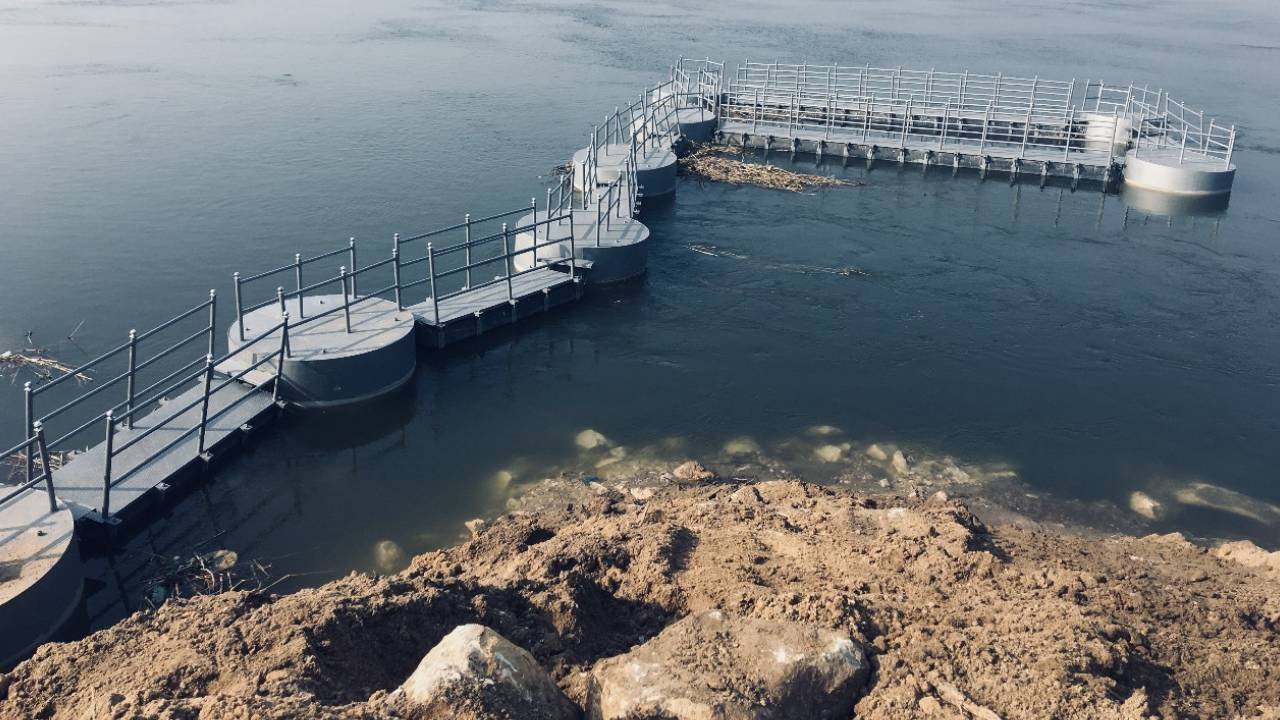 -Installing the floating walkway over the pipes